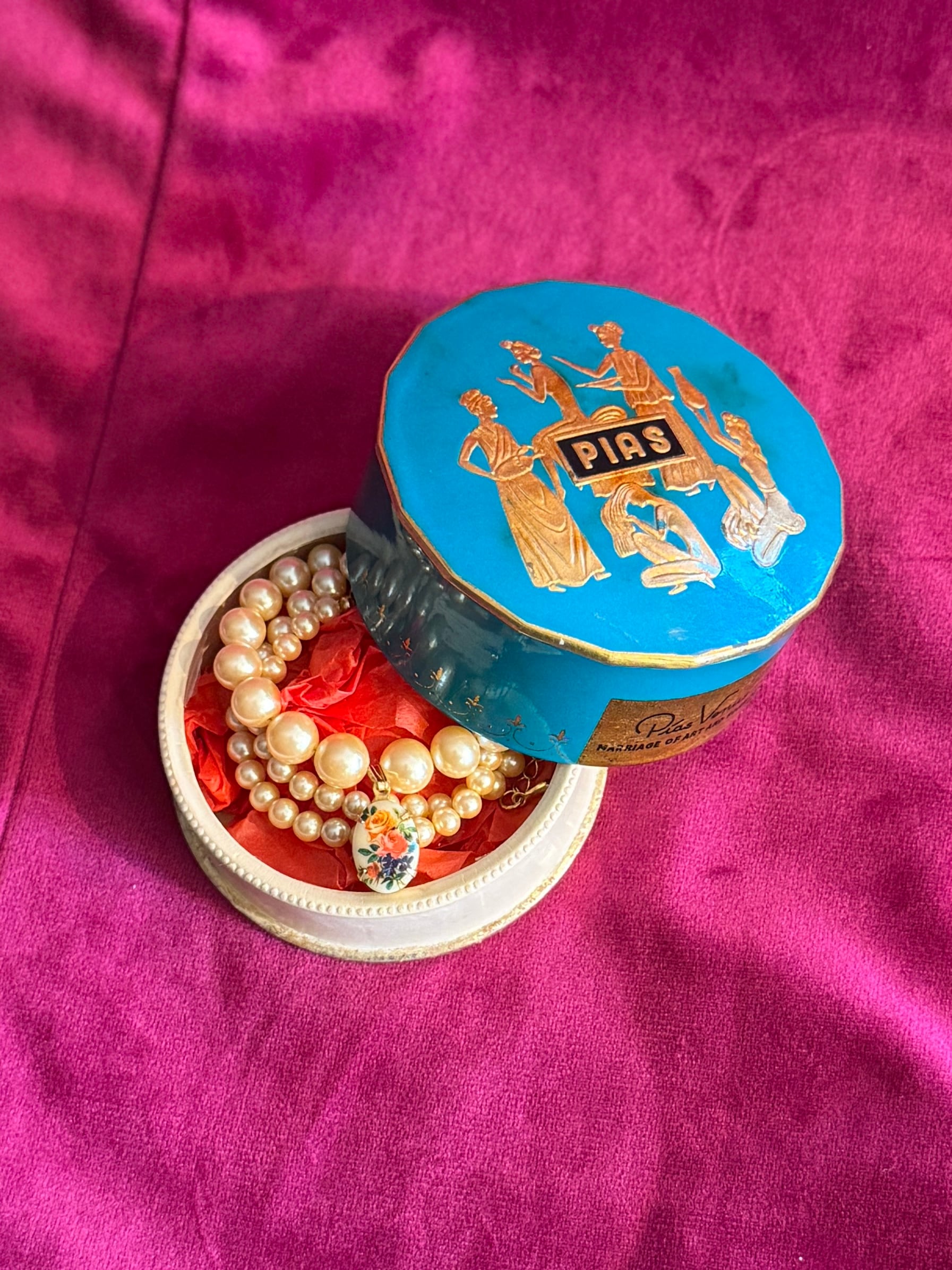 入れ物は、このネックレスに合うものを古道具屋さんを巡り集めたものです