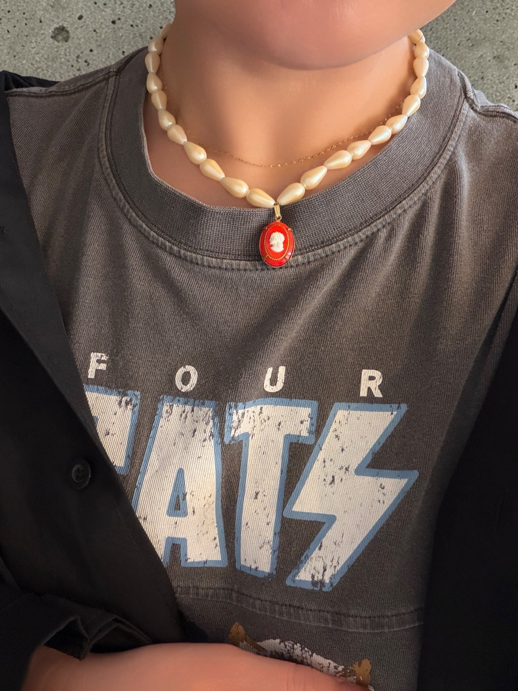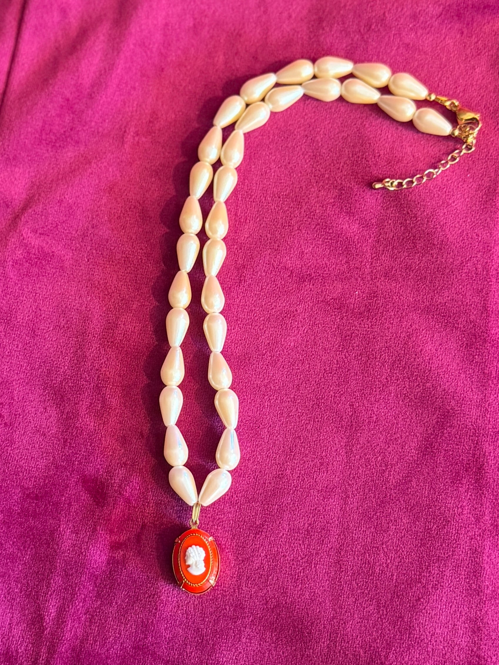 【一点物】《入れ物付き》Tシャツに合わせてほしいパールネックレス〜カメオ Red左向き〜