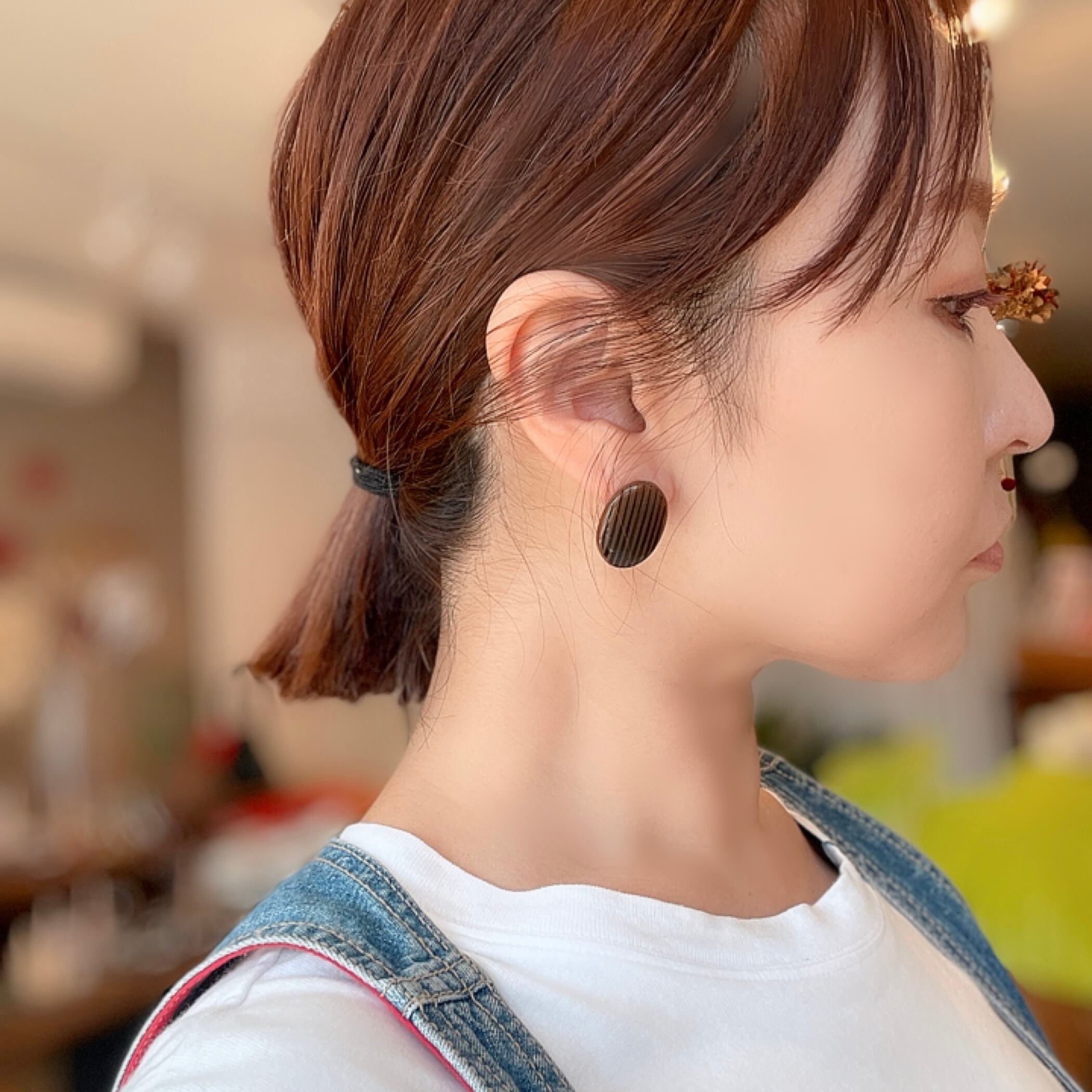 イヤリング---イヤリング金具を開くとウッドリングが外れますので、そのまま取って頂きウッドリング無しでお使い頂くことも出来ます。