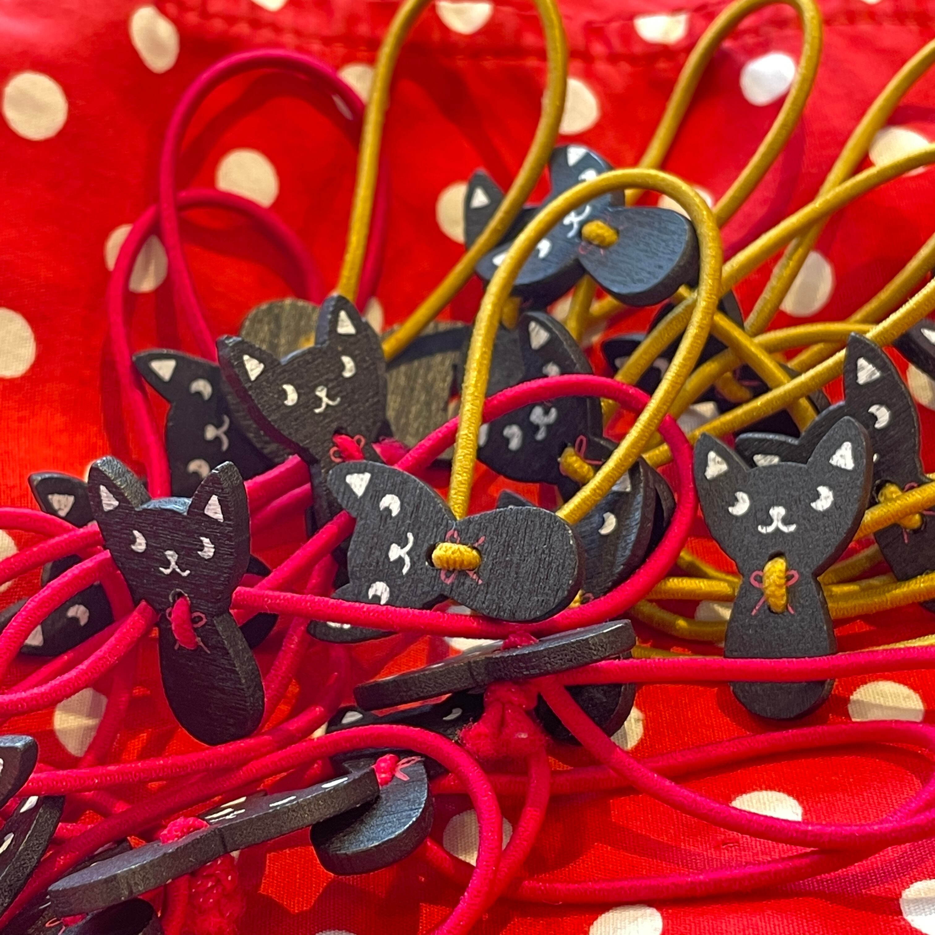 店頭、イベント出店で大人気の黒猫のヘアゴム。