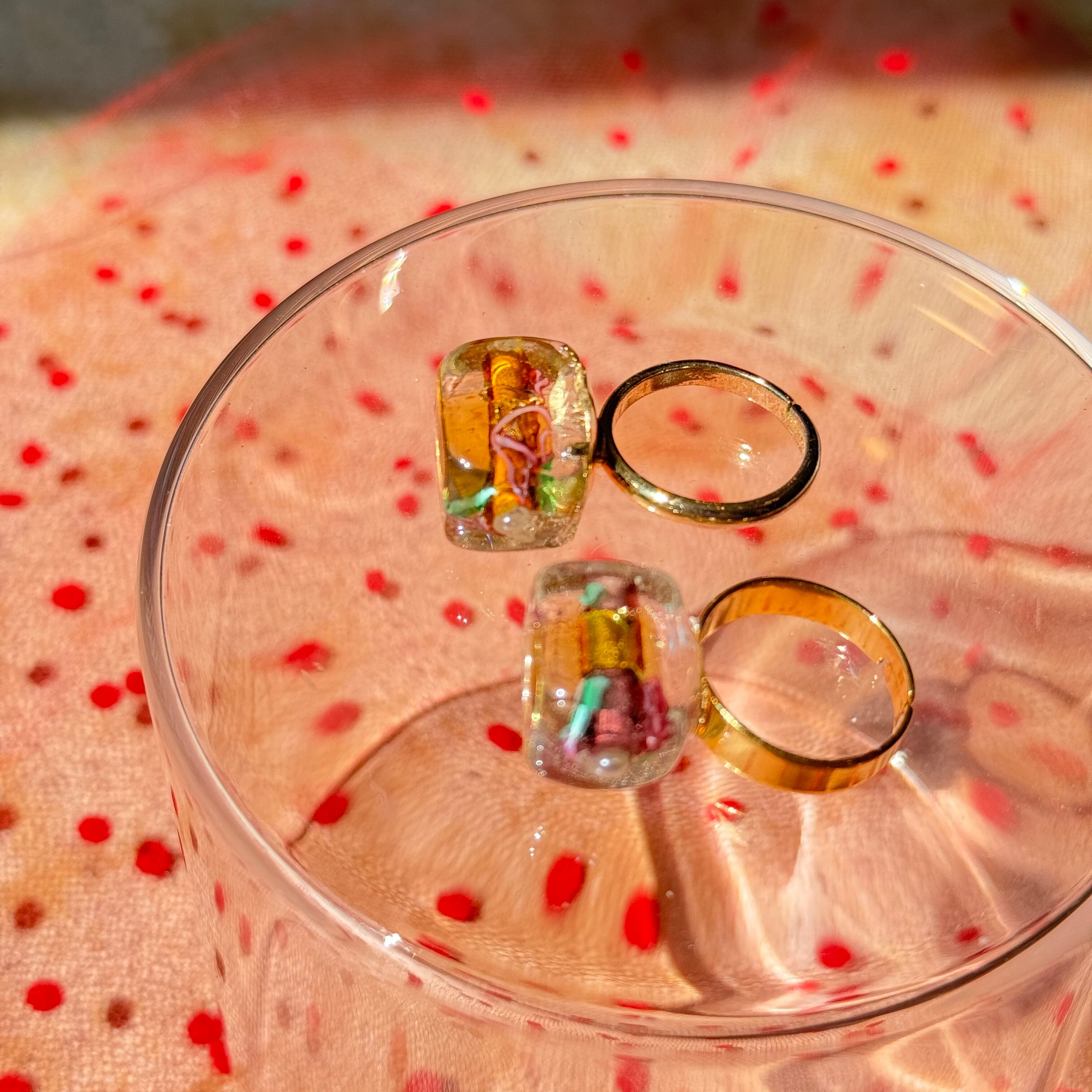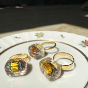 写真5枚目の様に華奢なリングと重ねづけも可愛いです。